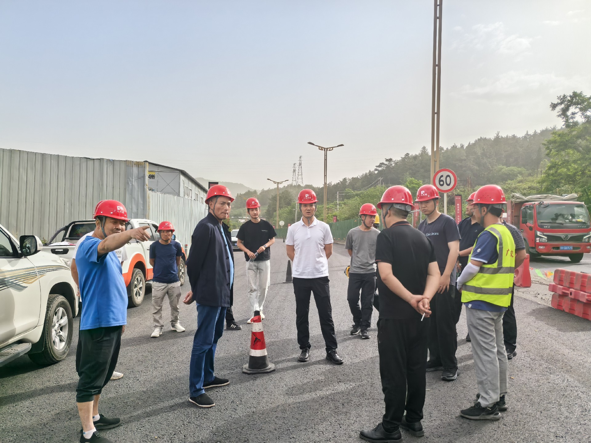 5月9日,總經(jīng)理黎強(qiáng)在G108項(xiàng)目現(xiàn)場主持召開揚(yáng)塵治理專題會。