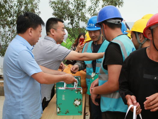 馬江利一行親切慰問工作在一線的職工們,為他們送上了白糖、水杯、茶葉、毛巾等防暑降溫用品,并叮囑他們一定要注意防暑降溫,勞逸結合,合理安排項目現場施工,做好夏季安全防護工作。
