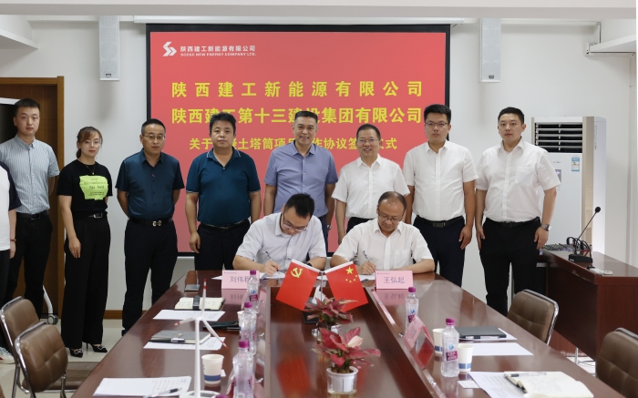 6月26日,集團(tuán)與陜建新能源公司舉行混凝土塔筒項(xiàng)目簽約儀式。陜建新能源公司董事長李建飛,集團(tuán)黨委書記、董事長卜國平致辭并鑒簽。陜建新能源公司副總經(jīng)理劉偉程,集團(tuán)總工程師、陜建(延安)新型建材公司董事長王弘起代表雙方簽約。