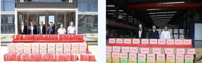 在五一國際勞動節(jié)到來之際,受集團(tuán)黨委委托,集團(tuán)黨委副書記、總經(jīng)理?xiàng)钣篮辏偣こ處熗鹾肫?,總會?jì)師劉小衛(wèi),紀(jì)委書記、工會主席李靜先后到信天游文創(chuàng)餐飲街項(xiàng)目、陜建(延安)新型建材公司慰問一線員工及工友,并將慰問品送到他們手中。