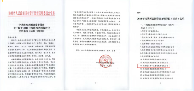 近日,中共陜西省國資委委員會印發(fā)關(guān)于授予2024年度陜西省國有企業(yè)文明單位(標(biāo)兵)的決定,集團(tuán)獲評“陜西省國資委文明單位標(biāo)兵”。